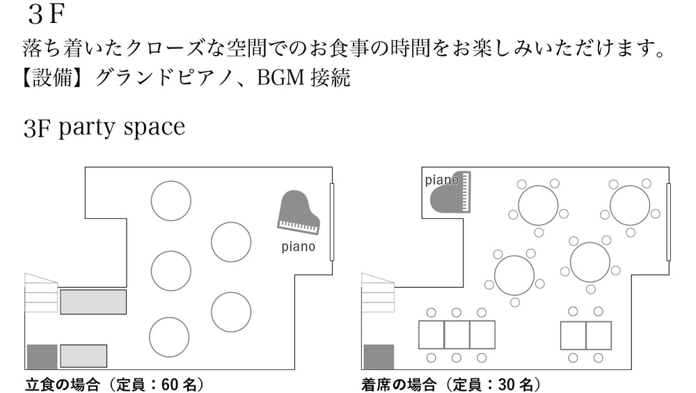 ※15名様からお受けいたします(繁忙期はフロア貸切最低保証料30万円)